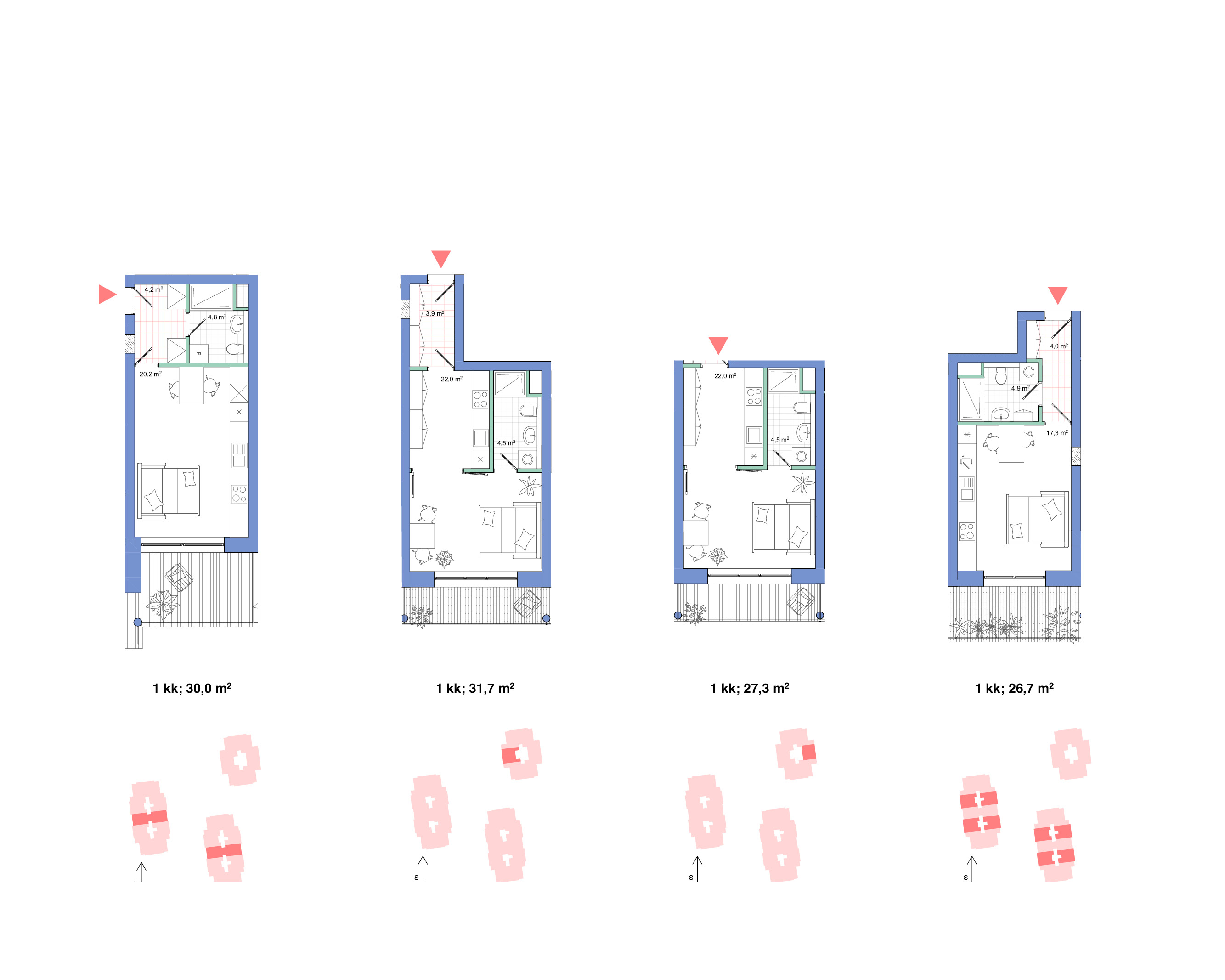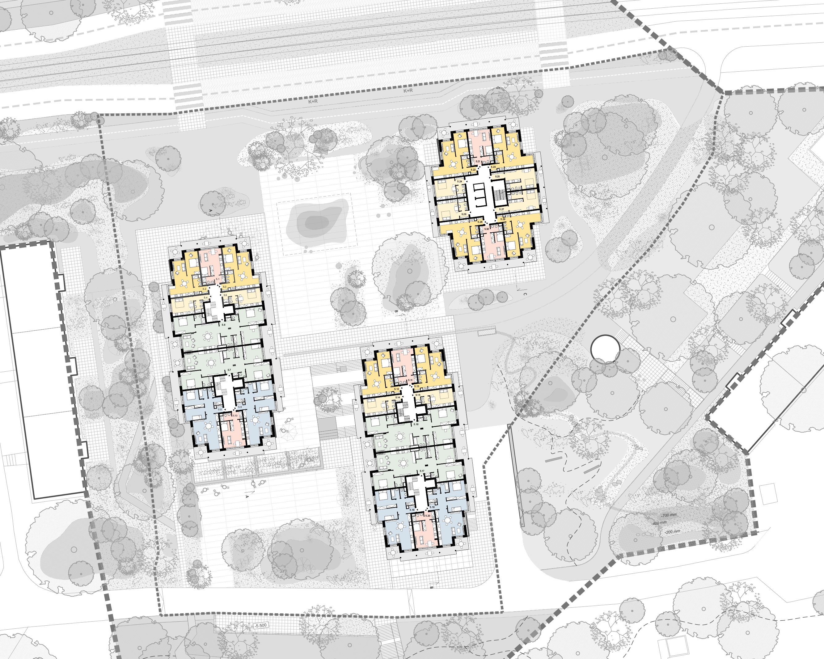 Nově vznikající domy nabízejí širokou škálu velikostí bytů doplněných o balkony, nebo pobytové terasy. Krajinářské řešení vychází ze snahy vytvořit prostředí, které nabízí mnohem více příležitostí pro trávení volného času, je odolné proti projevům klimatické změny a design prostředí je současně přátelský vůči dětem, které se v místě intenzivně pohybují.