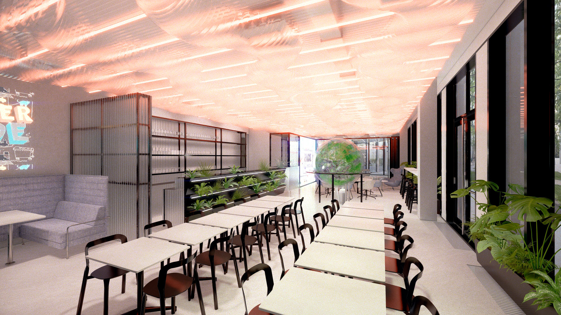 Hybrid space for meetings, exhibition, education and relaxation based on re/upcicling